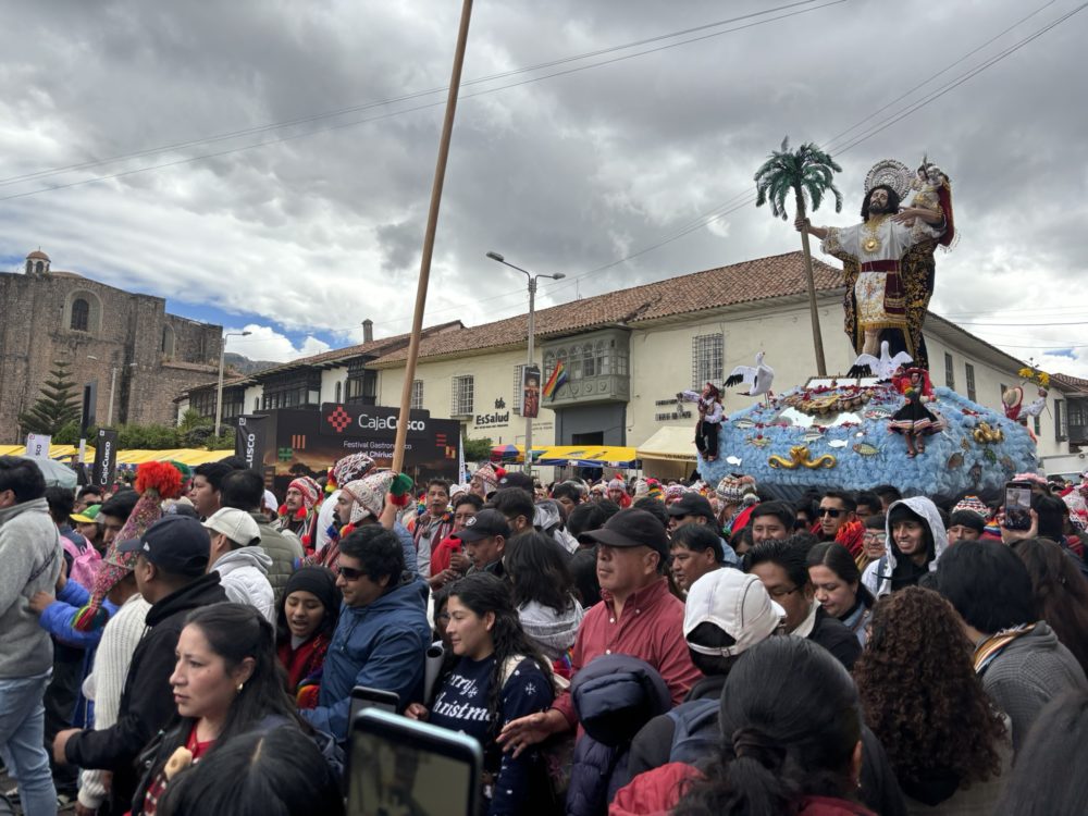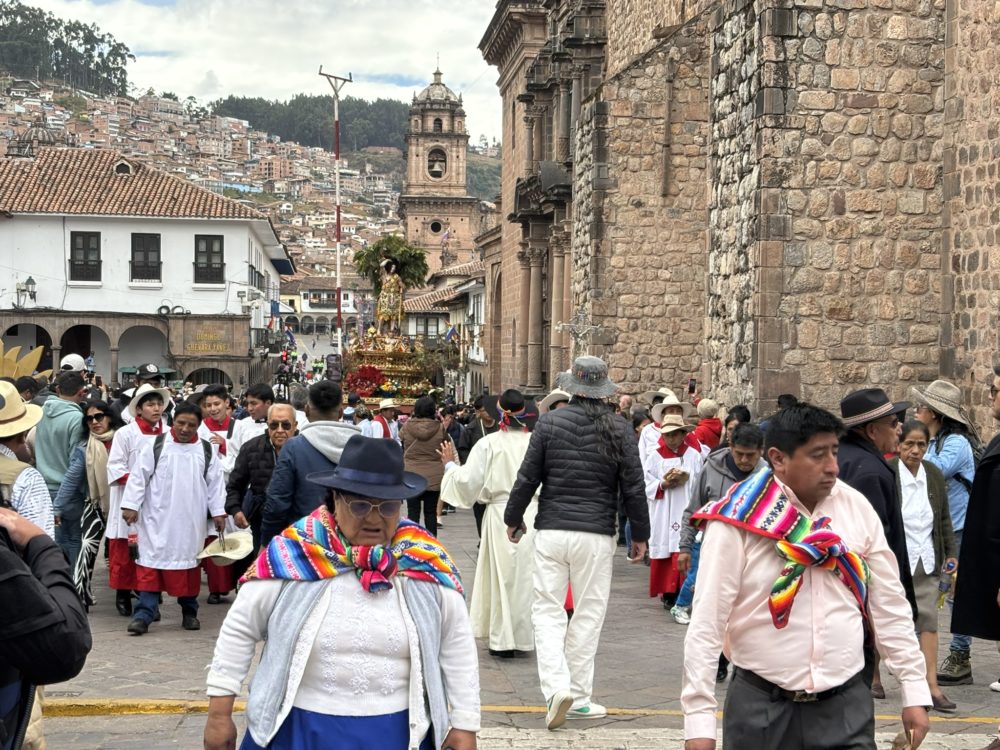 この区間は、往路同様、世界一周航空券とは別で調達したJetSMARTのチケットを使用して移動しました。午後のフライトだったので、午前中にクスコの中心街に行きました。前のクスコ滞在時に6月19日(木)が、クスコの聖なる日との事で、18日(水)には、サン・フランシスコ広場に、町中の教会から聖人のみこしが集まると聞いていましたので、行ってみました。続々と集まってくる様子を目の当たりにすることができました。