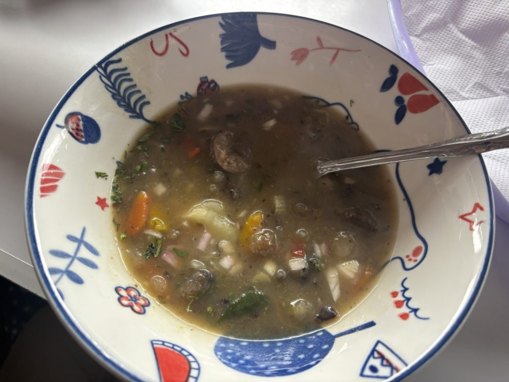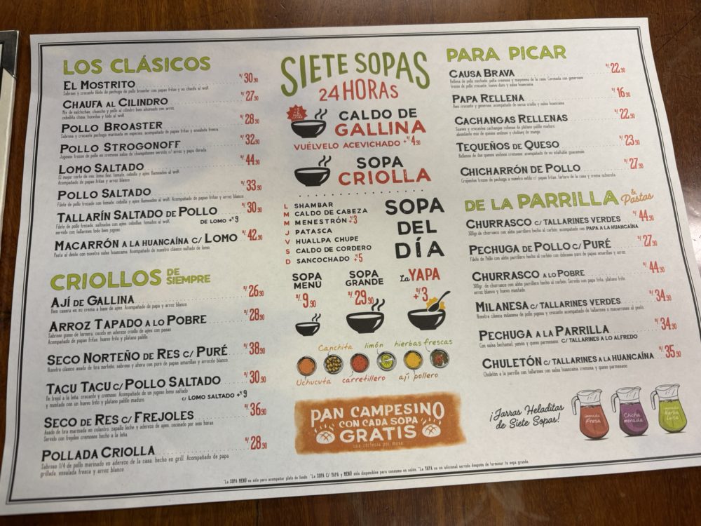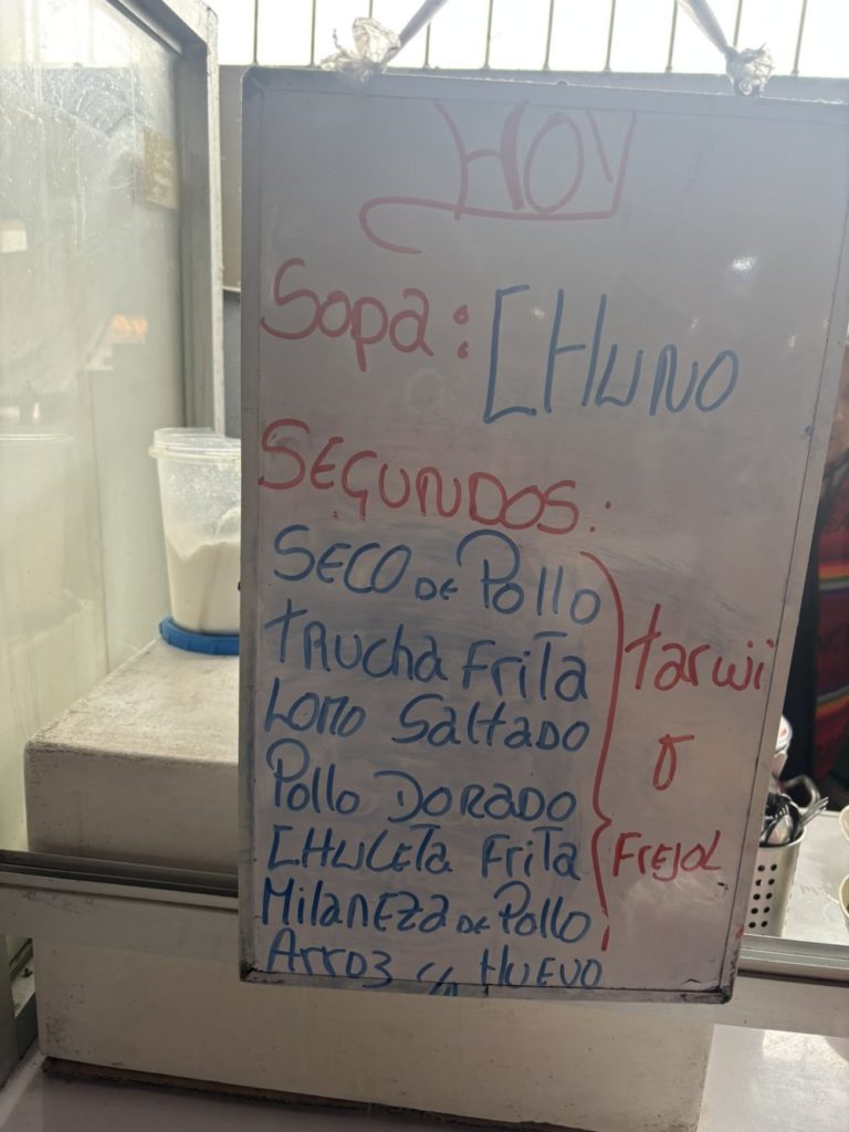 広場見学の後、市場に行き中の食堂で、早めの昼食としてスープをいただきました。具沢山のスープが4ソル(160円)でした。