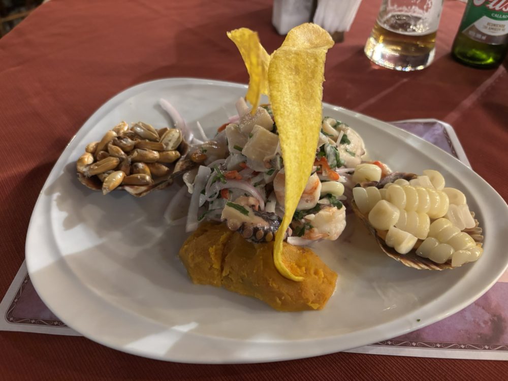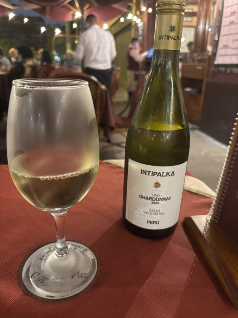 リマでは、夕食にセビーチェをいただき、シャルドネ(白ワイン)に合わせてみました。ペルーのワインも美味しかったです。