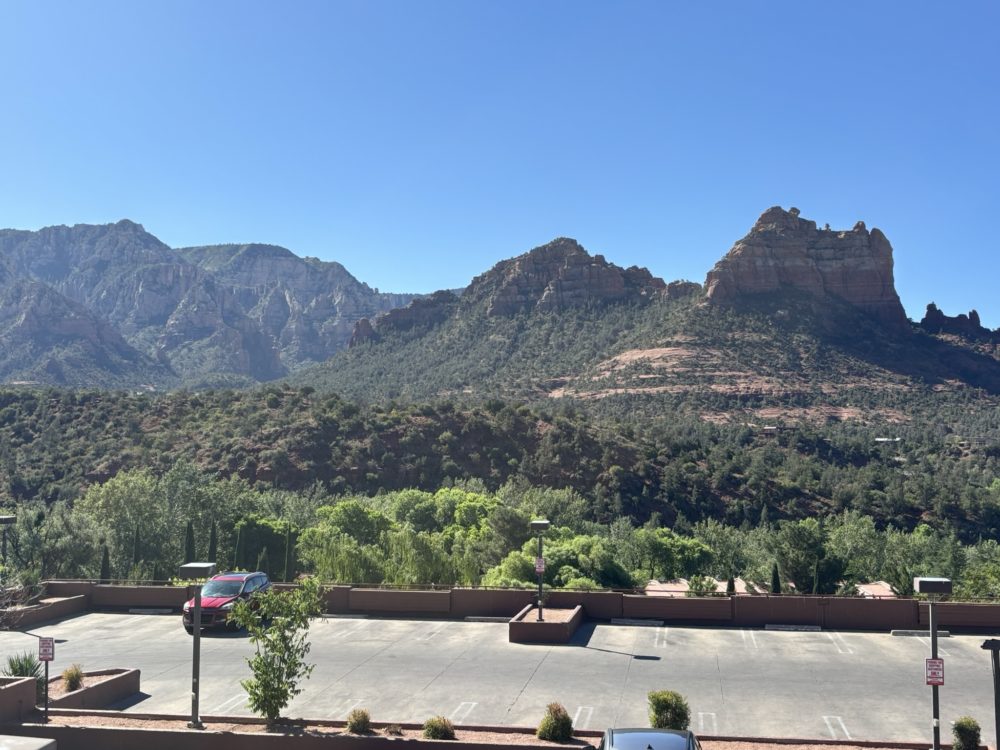 翌朝は、8時ごろに起きて、モーテルの朝食をいただき、再びシャトルで、空港に行きました。予約していたレンタカーを受け取ったのですが、予約が「RAV4クラスのSUV」だったのですが、大き目のSUVしかないと言われて出てきた車は、ビューイックの3列シートにもなるSUVでした。フェニックスを出発し、セドナを目指しました。