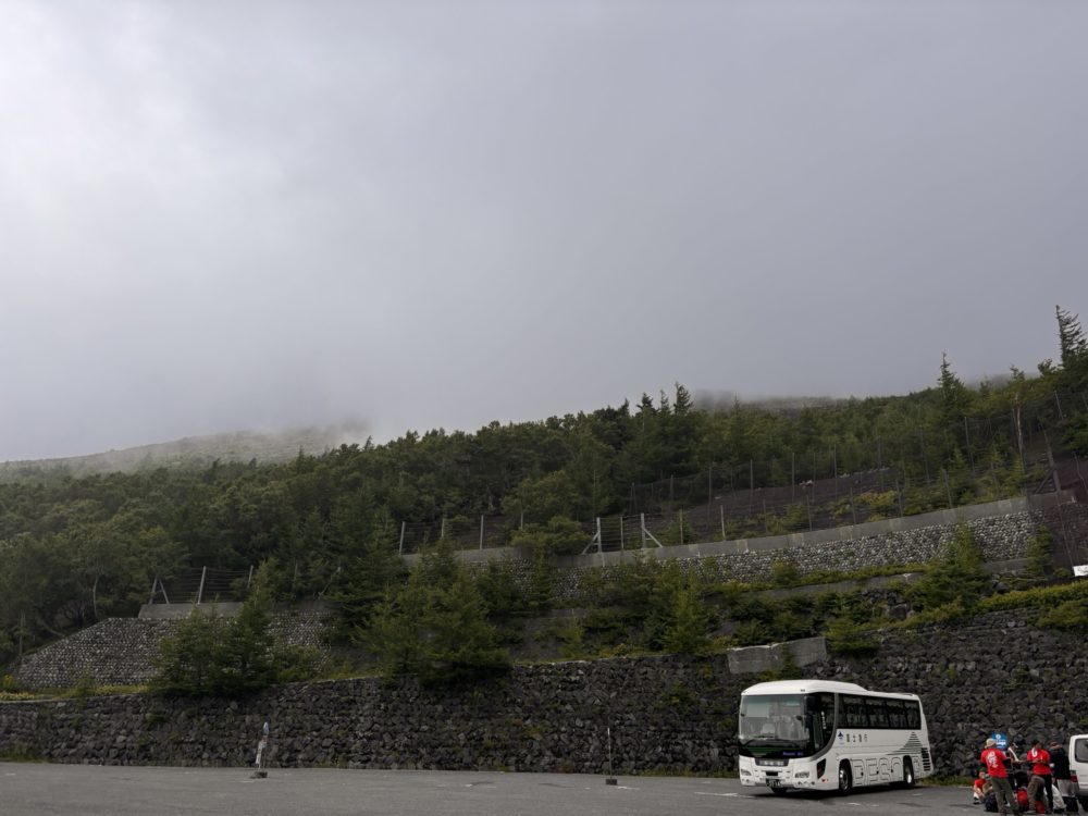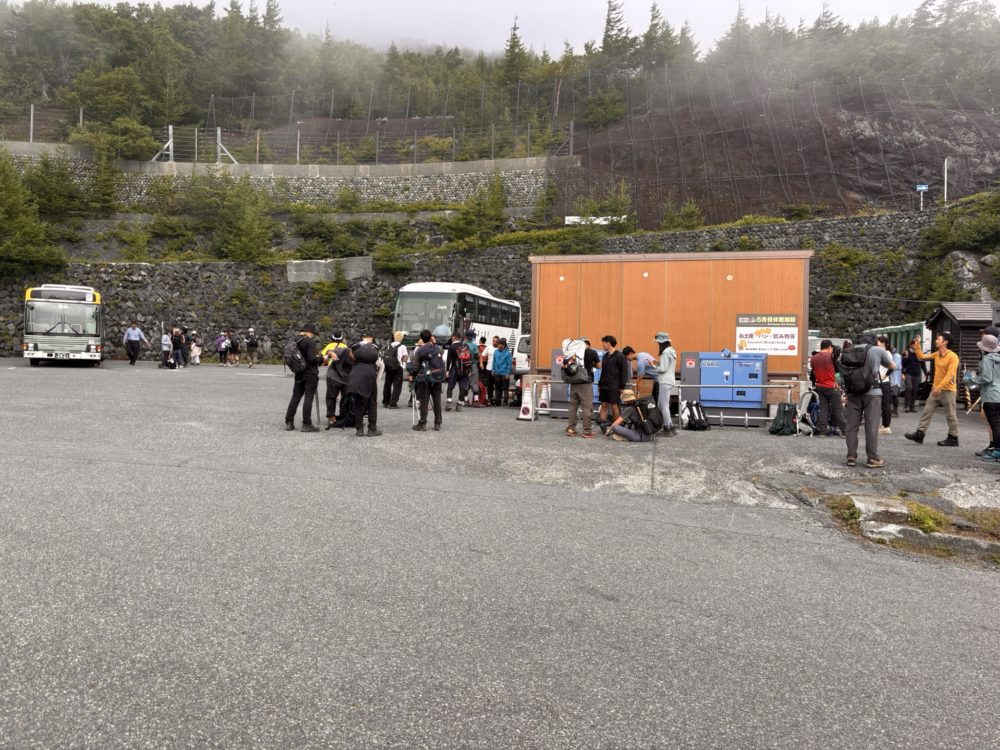 8月25日(月)いよいよ登頂です。ペンションより、水窪駐車場まで車で移動し、そこからはバスで、富士宮口まで移動です。昨年の吉田口に比べると質素な施設でしたが、大きな施設は以前の火災で焼けてしまった様です。