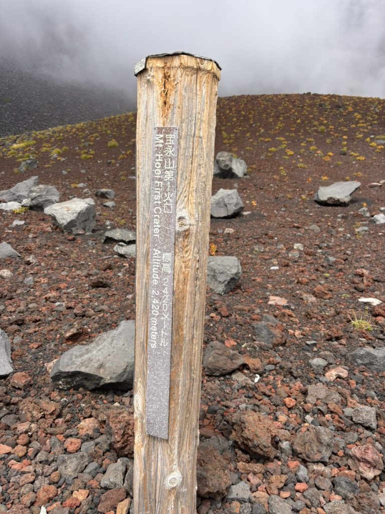 プリンスルートは、ここから宝永山方向にトランスバート(横移動)します。6合目が約2,500メートルに対し、宝永山火口は、5合目と同様の2,400メートルゆえ、ちょっと残念な気持ちにはなりました。