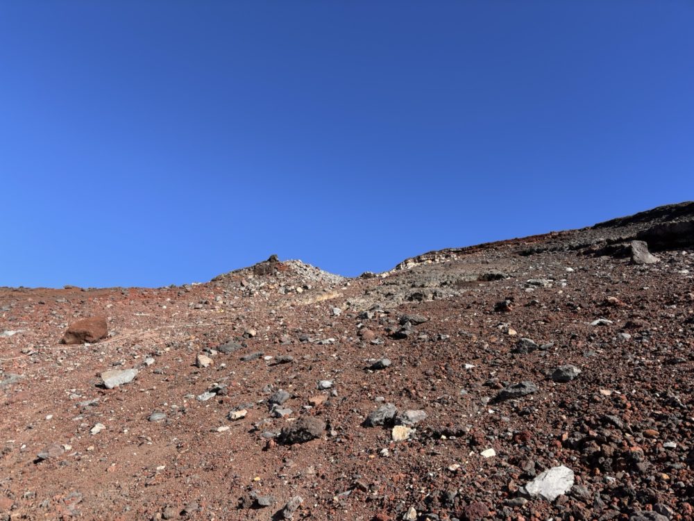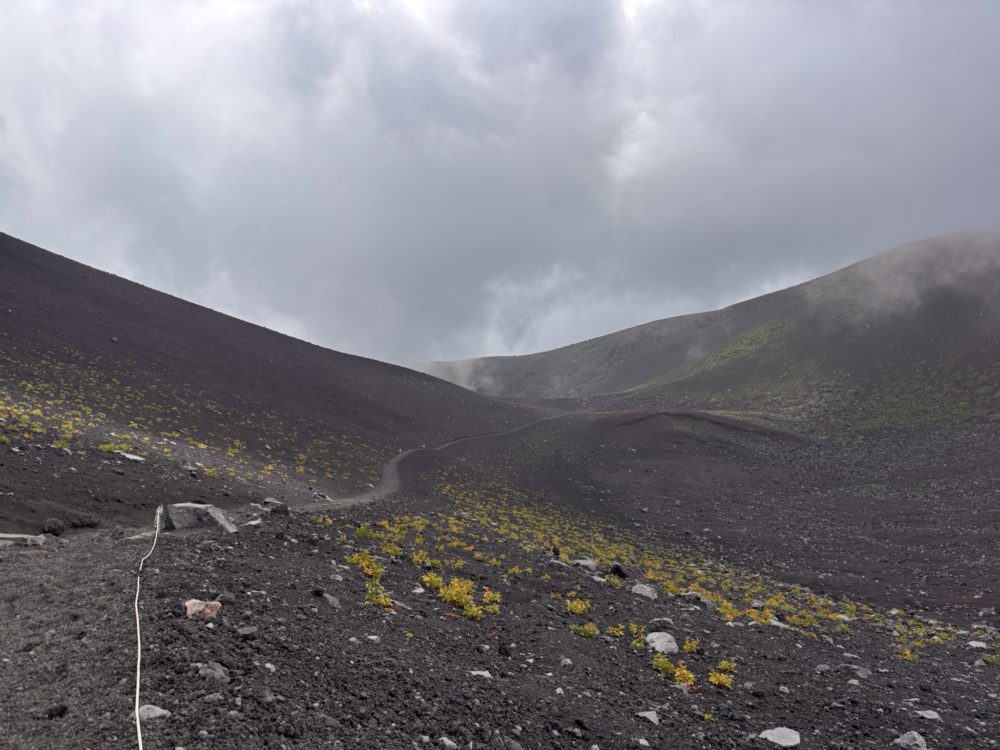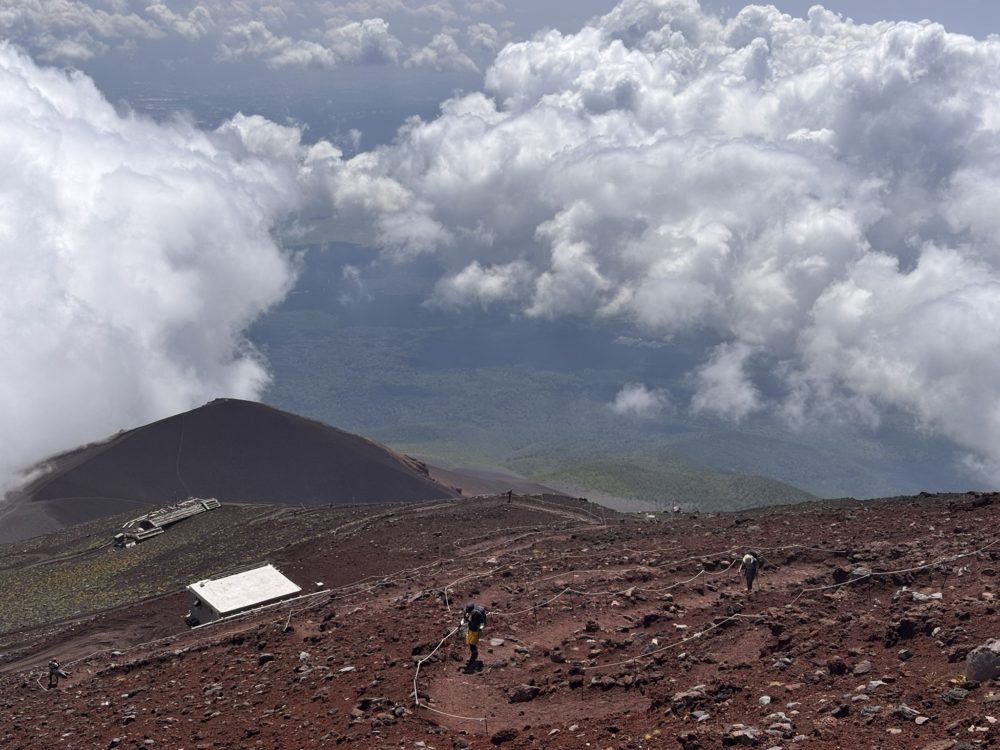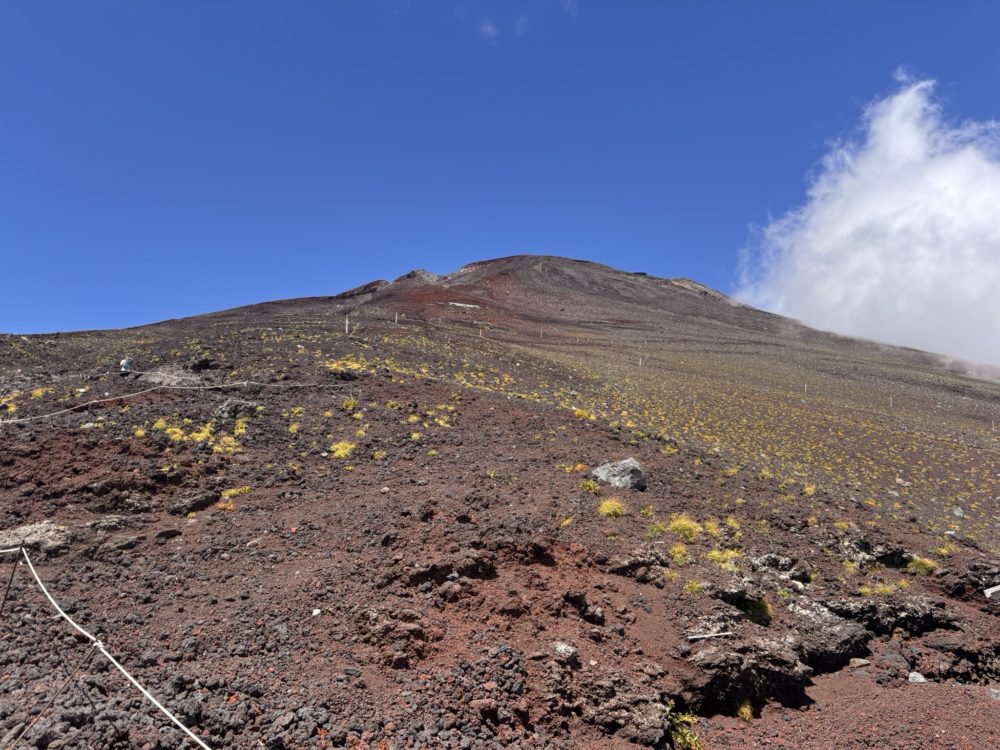 火口から御殿場ルートに至る道は結構細かな火山灰の様な道で、足を前に進めるのですが、滑って1/3戻される感覚の難しい登りでした。