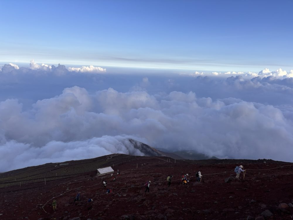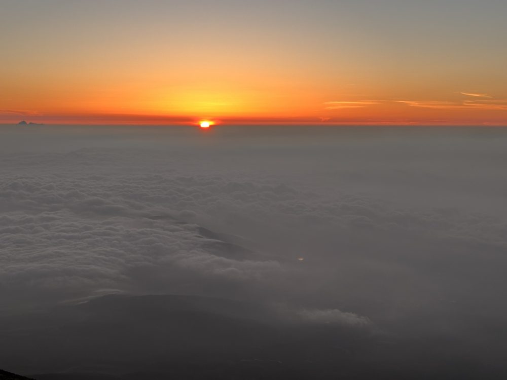 ツアーですと、夜中に山小屋を出発し、御来光は頂上で見るパターンが多く、昨年もそのパターンでしたので、大変疲れました。