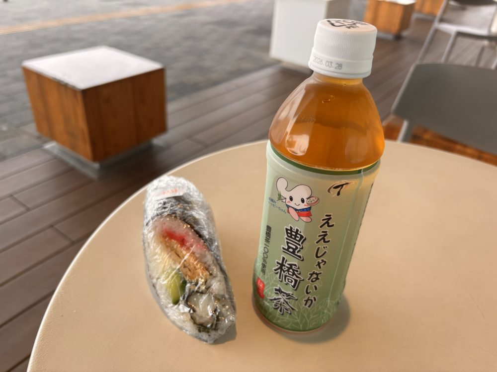 昨年同様に所要時間は、約4時間だったのですが、出発時刻が5時半から6時にずれており、今年の到着は11時の受付時刻ギリギリとなりました。途中、「道の駅とよはし」で、カレーパンと黒糖ミルクコーヒーで、朝食をいただきました。
