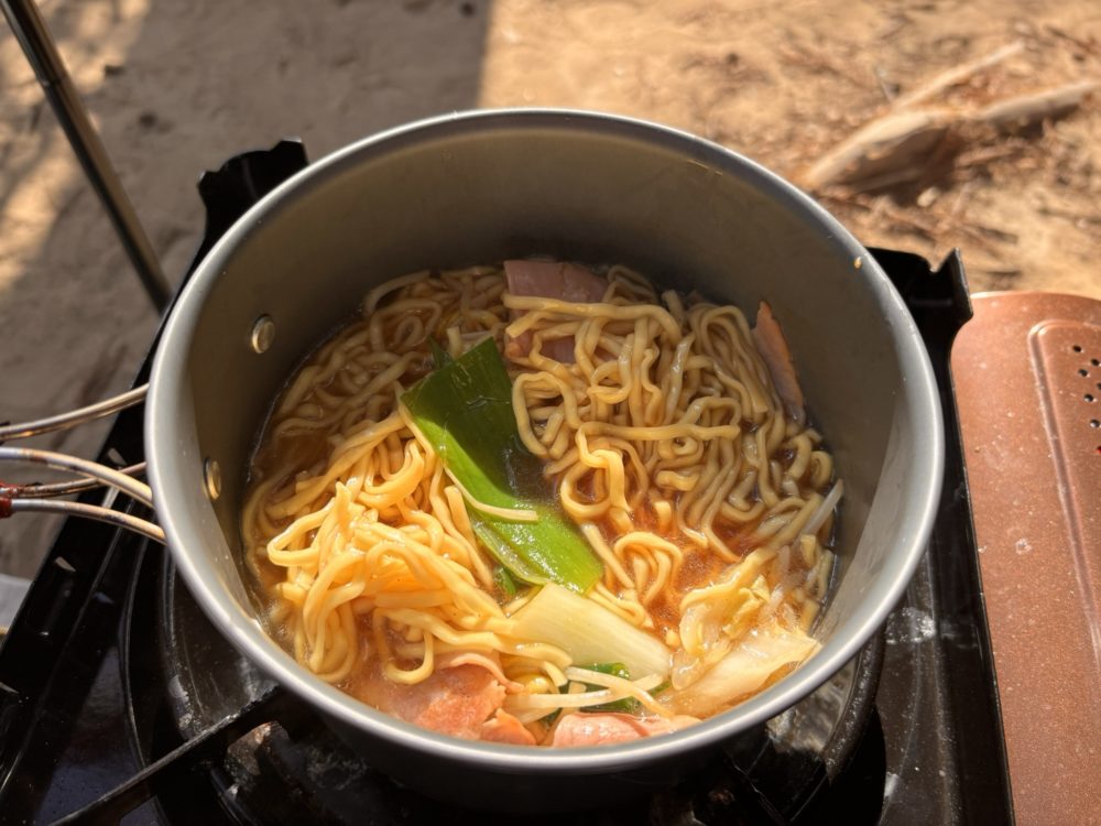 焼酎のお湯割りと焚火で温まりながら、一人時間を楽しみました。