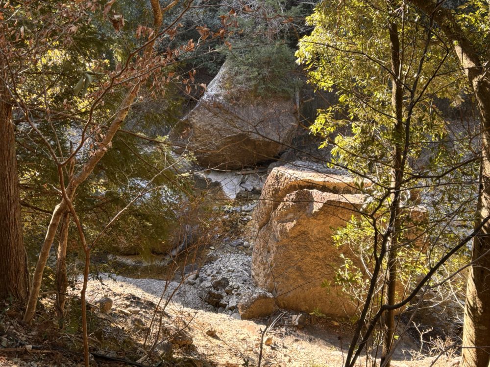 普段は水没している昔は、沢からの水を通したであろうと思われる部分を発見しました。さらに進むと、